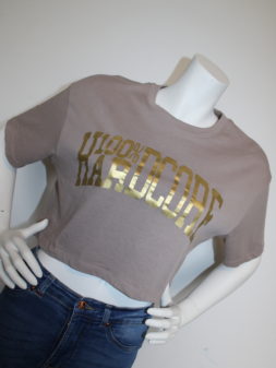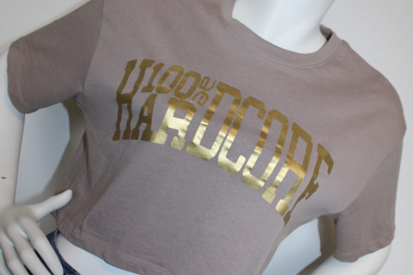 Cropped top Hardcore Bedrukking Stoere cropped top met hardcore-print: luchtig, zacht en perfect voor festival. Tip: Voeg een kleine naam of initialen op mouw/kap toe voor extra persoonlijkheid. Tshirt Wie de early niet eert Tshirt statement-tee