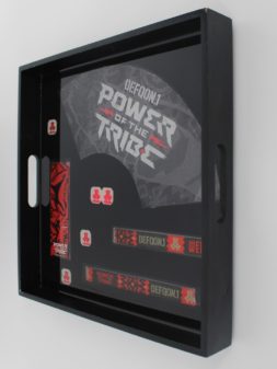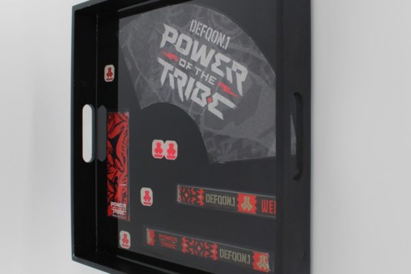 Dienblad festival herinnering Epoxy Epoxy dienblad met ingegoten festivalitems als blijvende herinnering. Dienblad bloem Dienblad groen en blauw tint