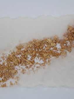 Epoxy dienblad in  wit met een opvallende diagonale lijn van goud.