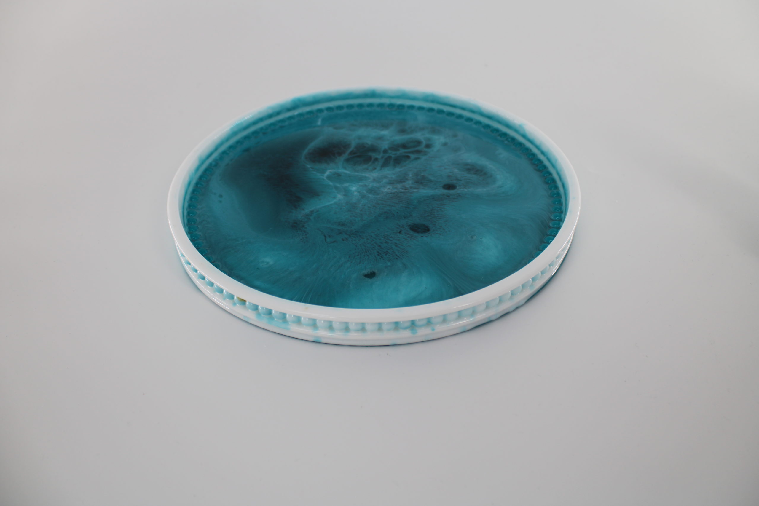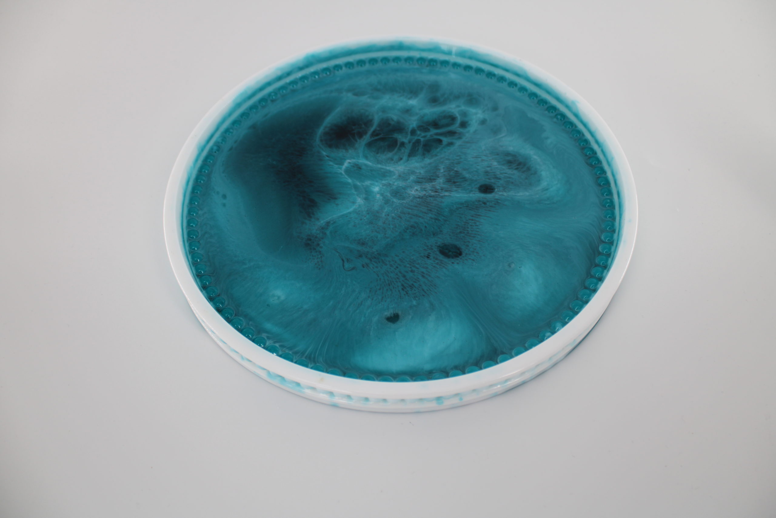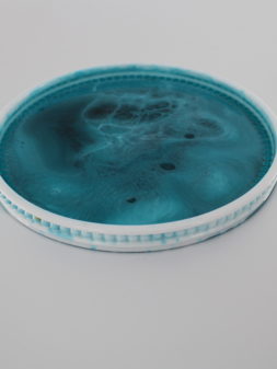 Dienblad groen wit Epoxy Epoxy dienblad in groen- en wittinten, een fris en stijlvol decoratief item. Dienblad groen en blauw tint Dienblad klein wit goud