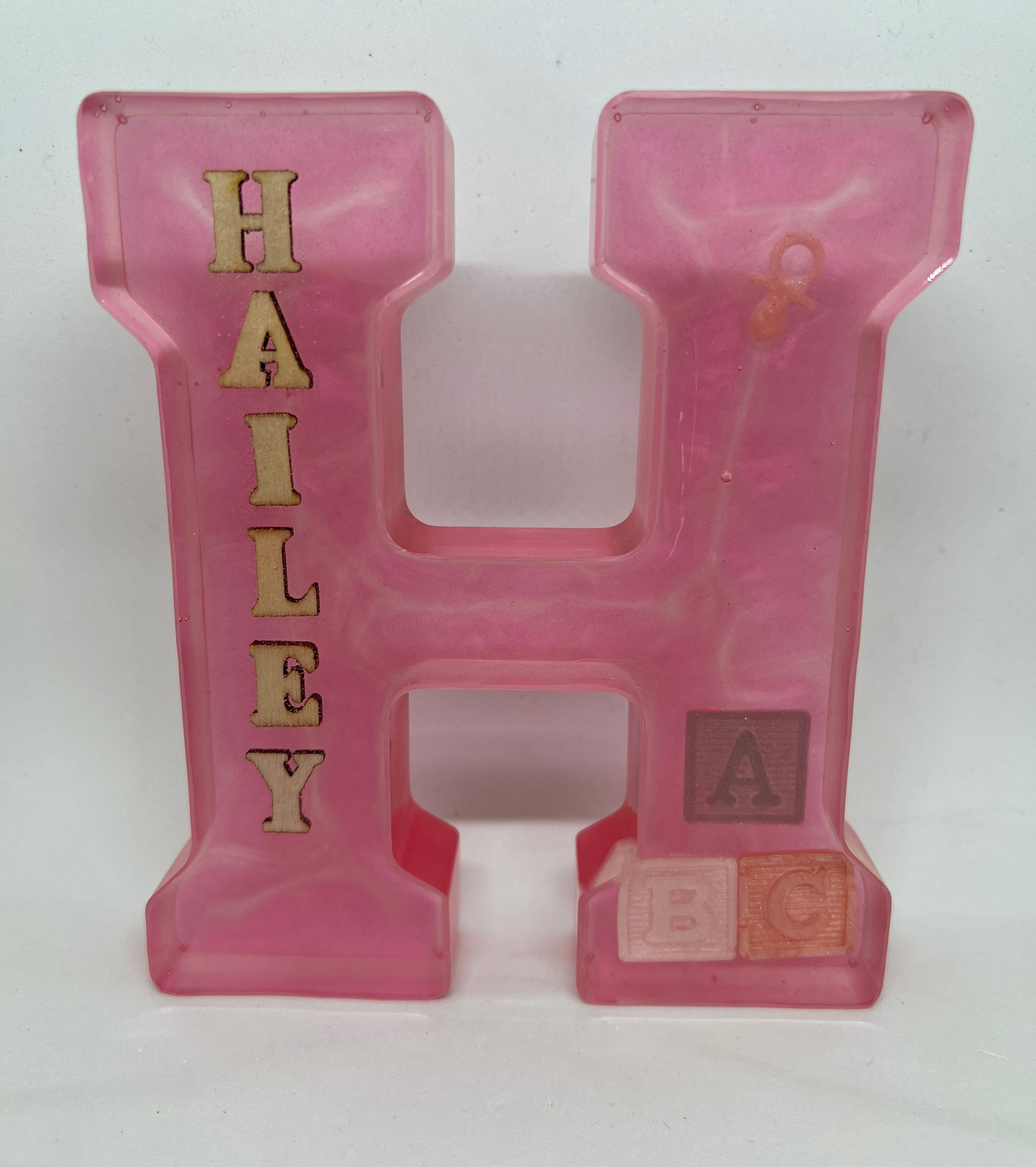 Letter H Epoxy Decoratieve epoxy letter met glans en diepte. Mooi als tafeldecoratie, (kraam)cadeau of onderdeel van een naamset. Tip: Combineer meerdere letters tot een woord of naam in jouw kleuren. Letter E Letter K