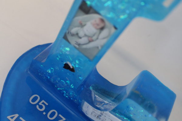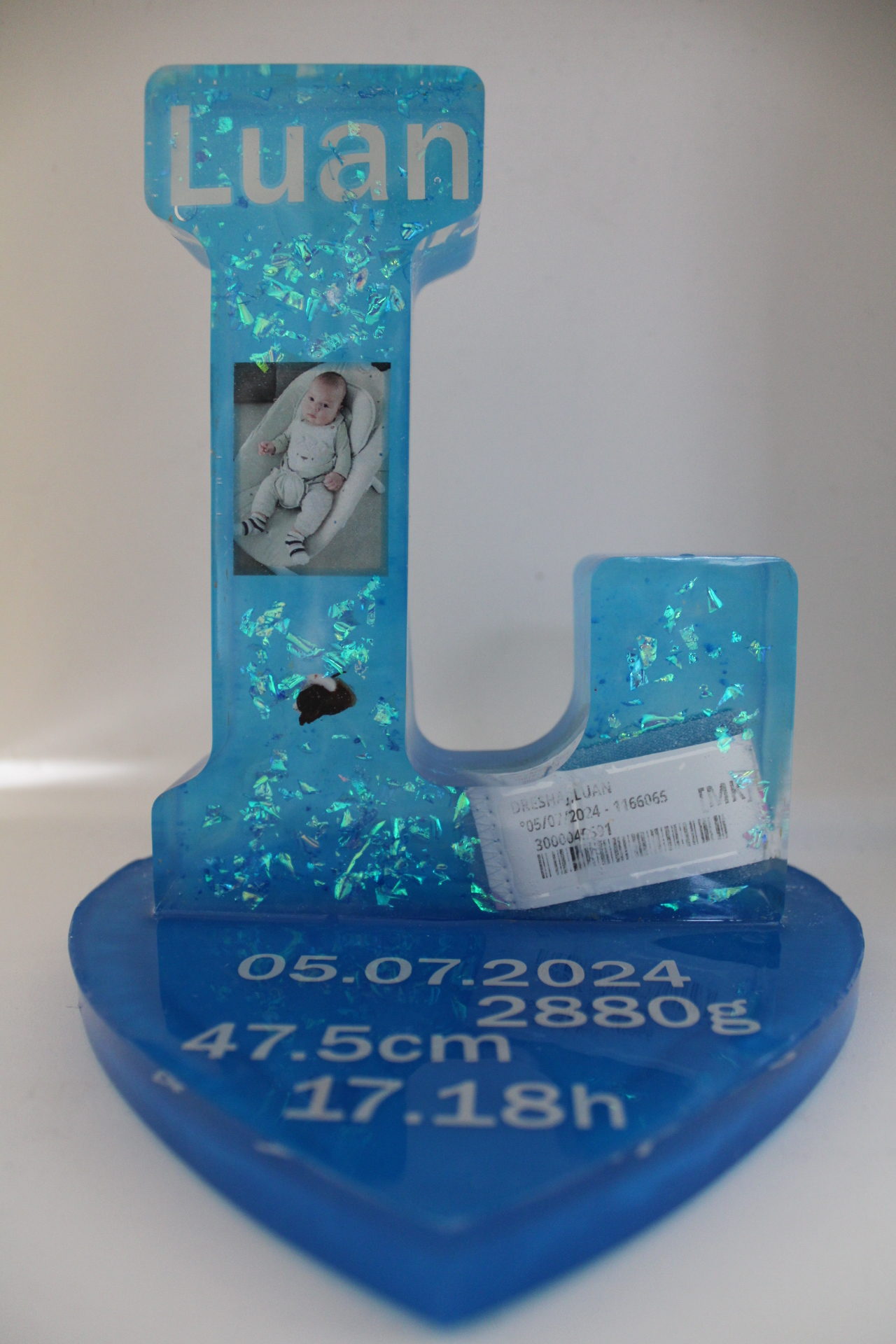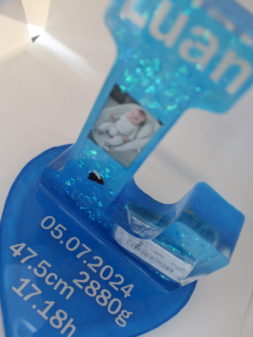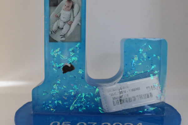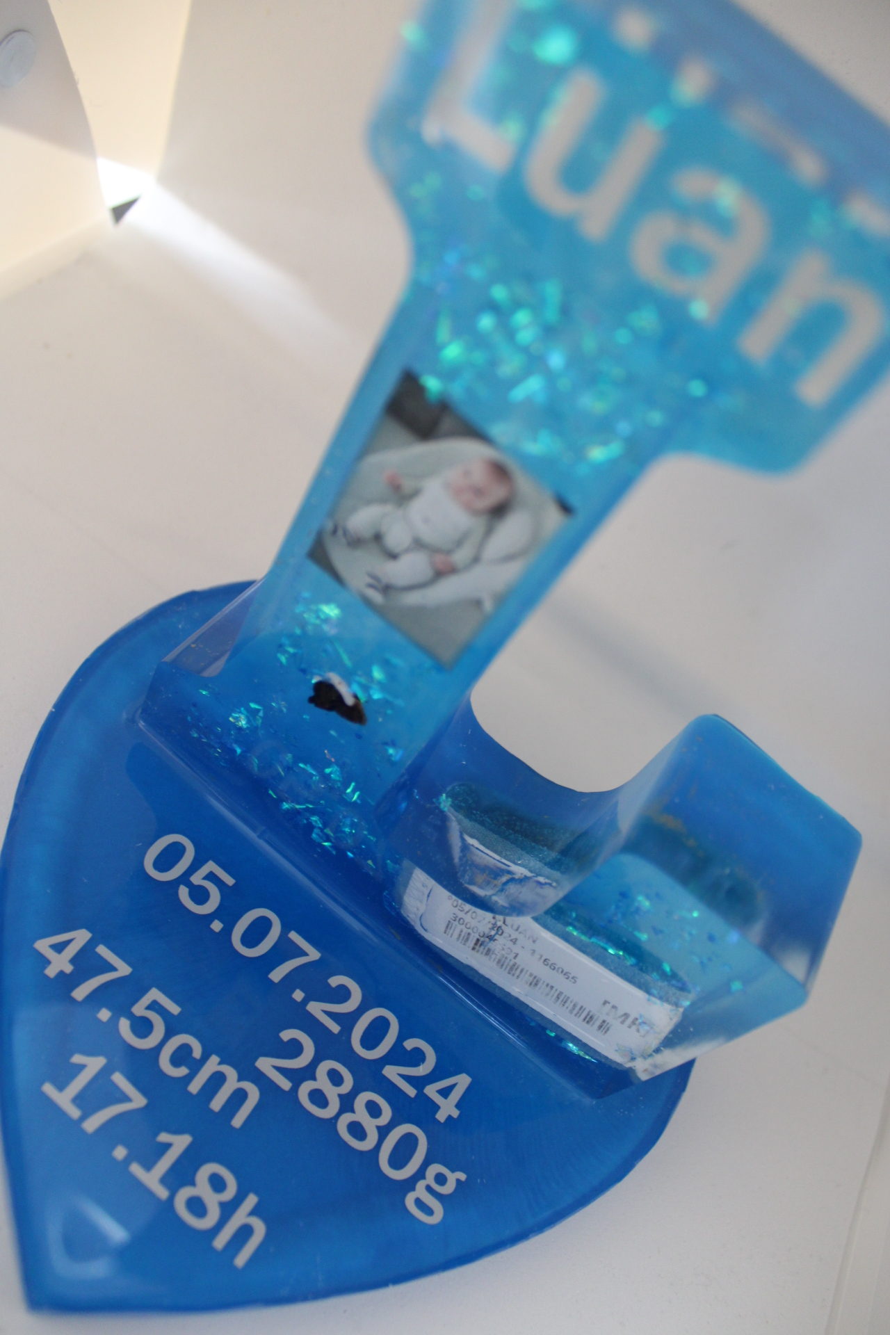 Herinnering Zwangerschap Epoxy Een initiaal vol betekenis: leg zwangerschap/ geboortedetails vast in epoxy. Decoratief én dierbaar. Tip: Extra mooi met subtiele flakes, goudvlokjes of een mini-foto. Letter T Fotolijst