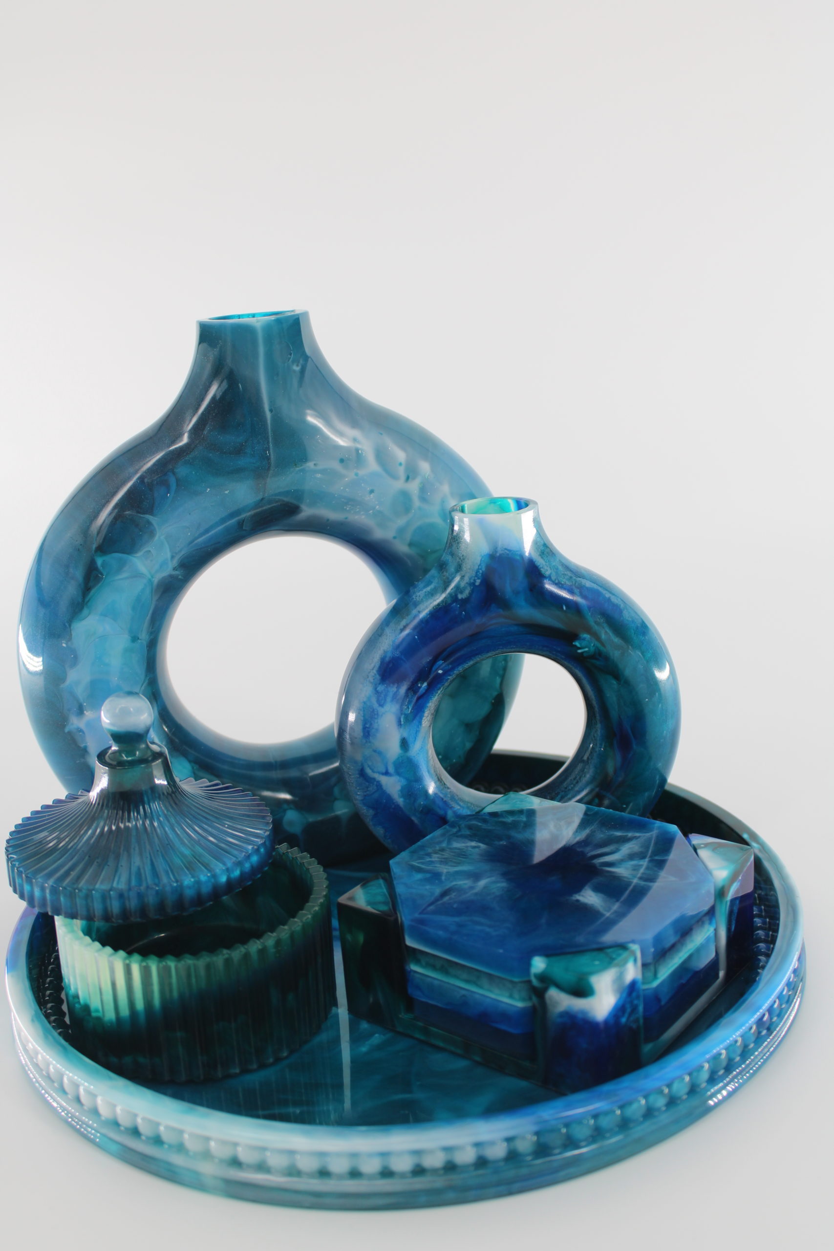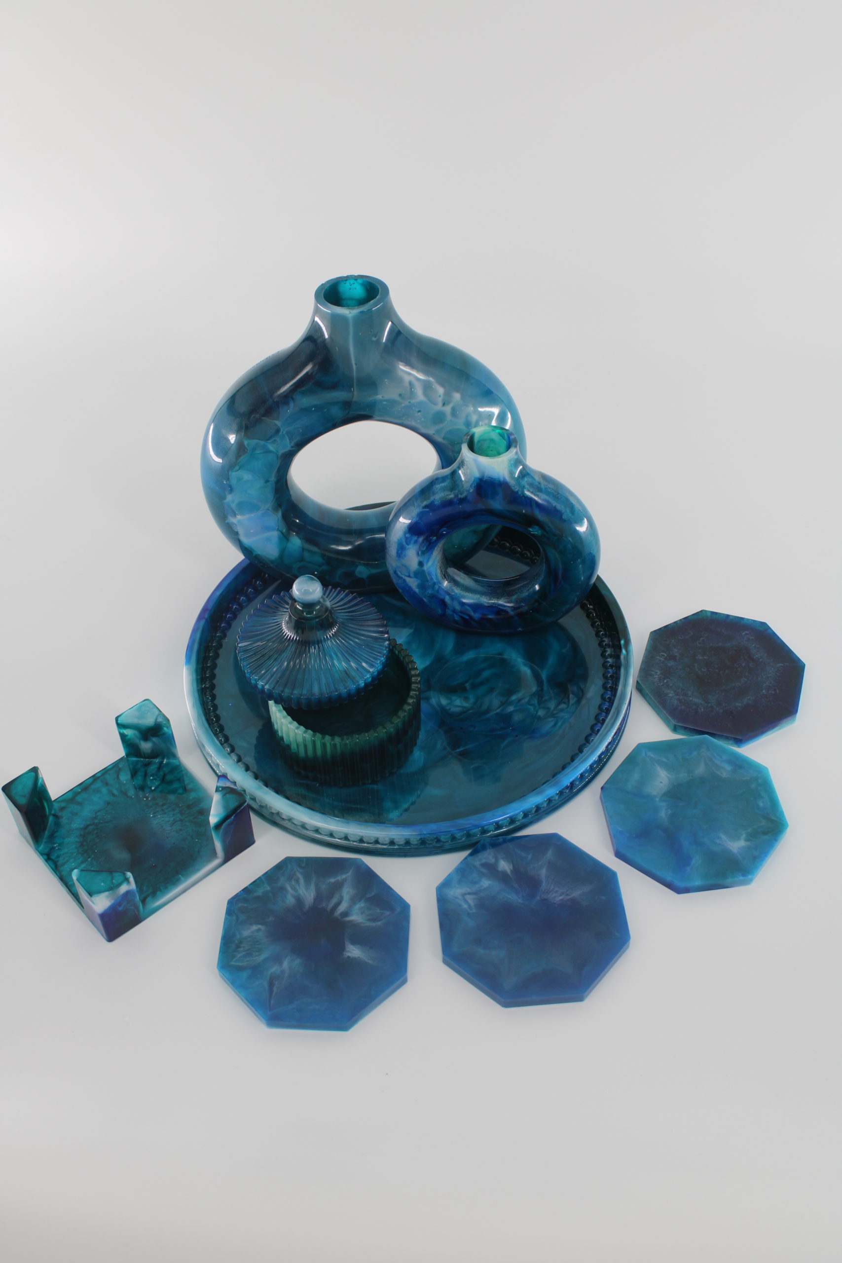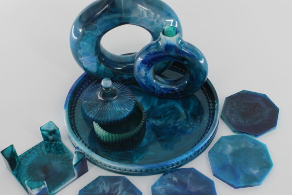 Epoxy Set Marineblauw Cadeau's Stijlvolle epoxy set uitgevoerd in diepe marineblauwe tinten. De set bestaat uit zorgvuldig afgewerkte decoratieve items, een leuk cadeau voor elke gelegenheid. Tips: Goodie bag Kinderfeestje Epoxy Set Cyaan