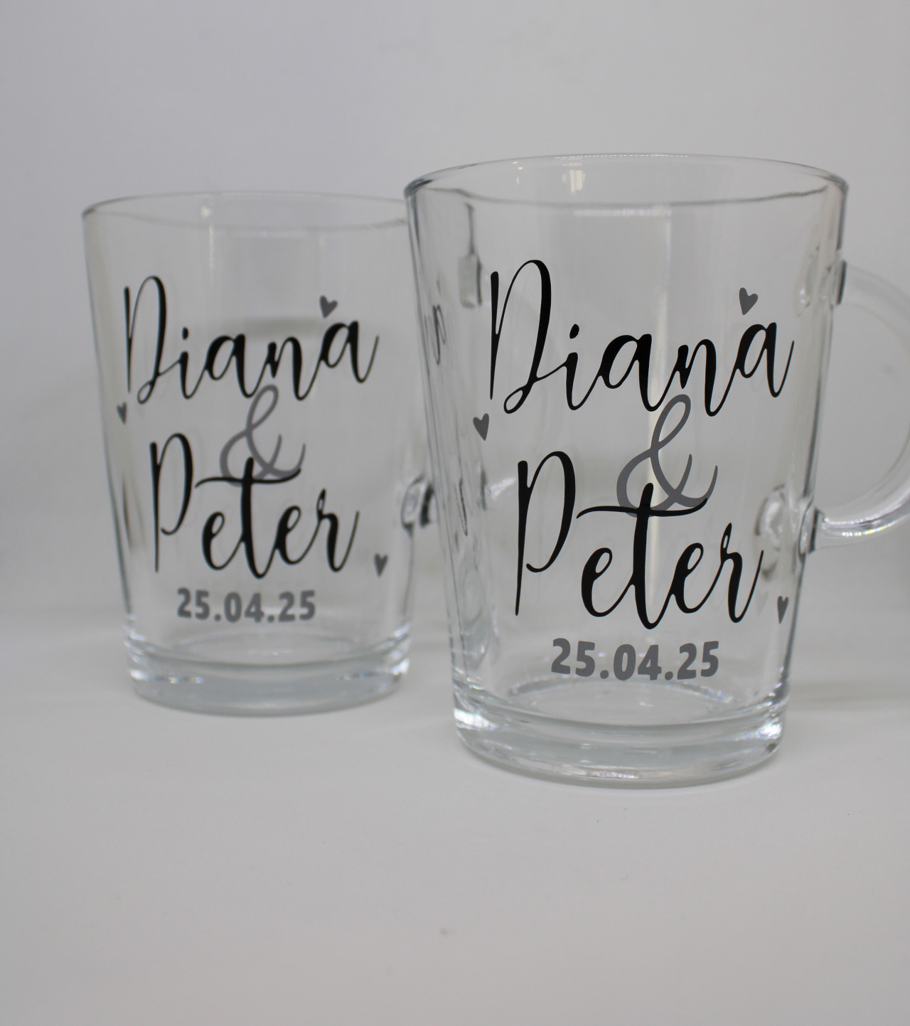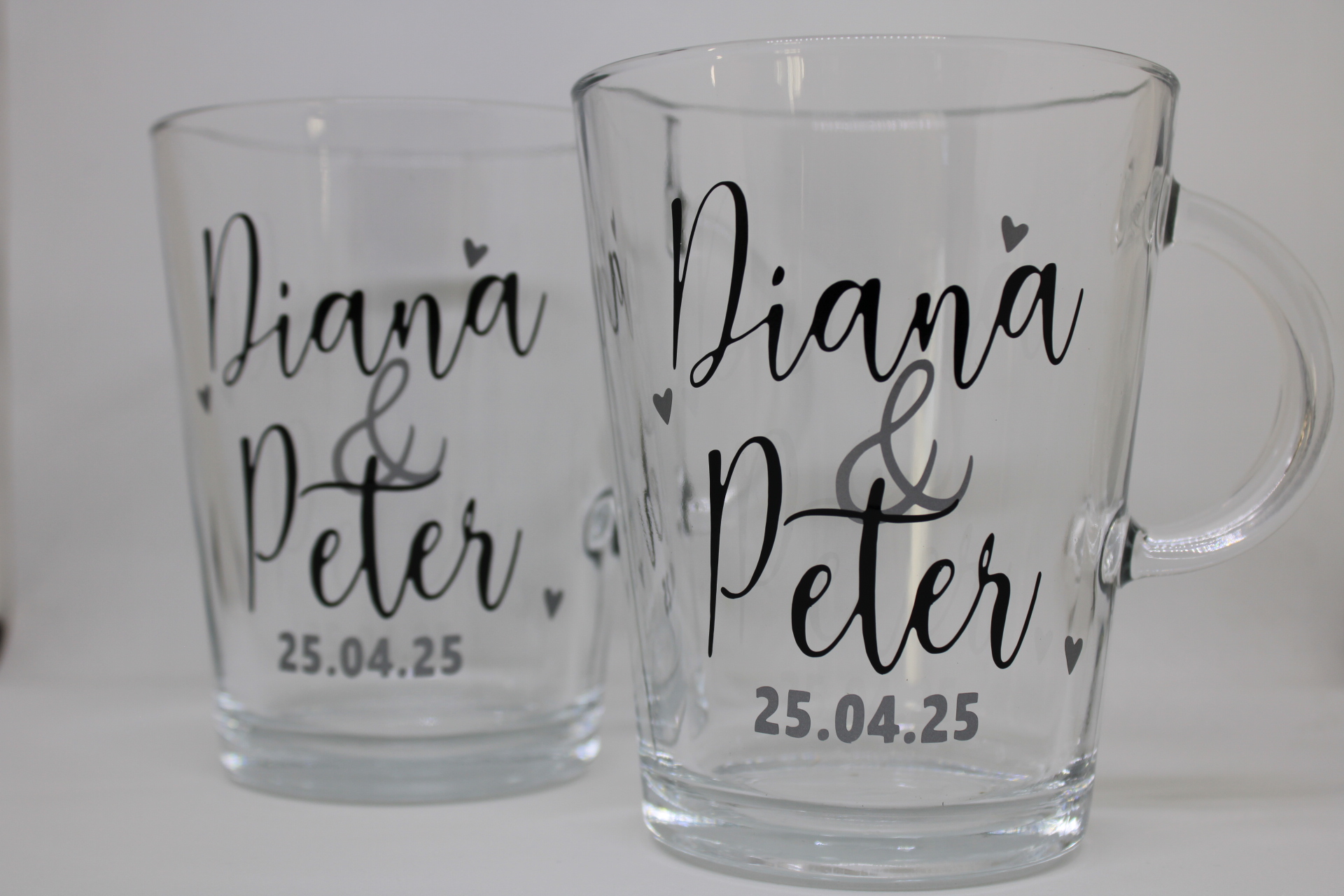 Thee Glazen Trouw Bestickering Set theeglazen met naam/initialen en eventueel datum; elegant en tijdloos. Tip: Perfect als duo voor bruidspaar/getuigen of housewarming. (Handwas aanbevolen.) Kerstballen Festival Mok Etailors