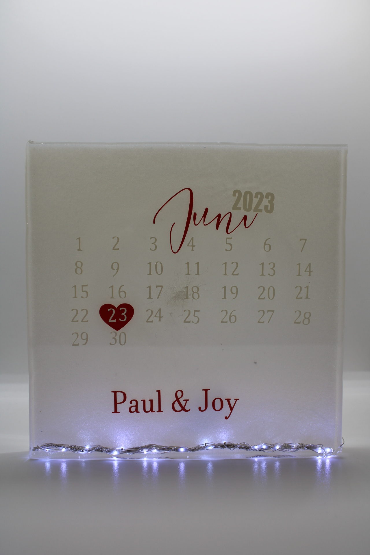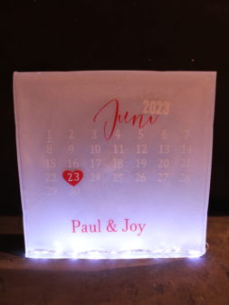 Herinnering Blok Relatie Epoxy Heldere epoxy block met namen, datum en trouwsymbolen (ringen/icoon). Stijlvolle, blijvende herinnering aan jullie dag. Tip: Voeg bloemaccenten, mini-iconen (bv. katten) of een eigen kleurthema toe. Pyramide Roos Deurhanger Memories