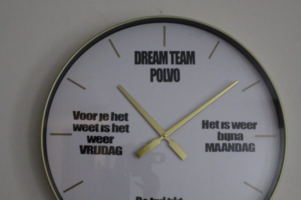 Klok quotes Bestickering Een functionele en stijlvolle wandklok met grappige quotes, die perfect past in een kantoor- of thuisomgeving. Tips: Fotolijst met logo’s Bestickering Pen
