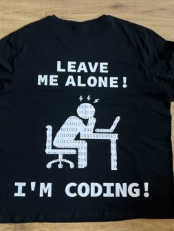 Mok Programmeren Bestickering “Leave me alone, I’m coding!” – de ultieme coder-mok met knipoog. Tip: Combineer met teamvarianten (just code it, bug hunter, etc.). (Handwas aanbevolen.) Emmer camperen Mok Vaderdag