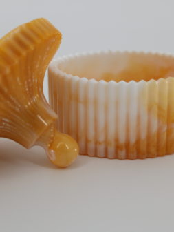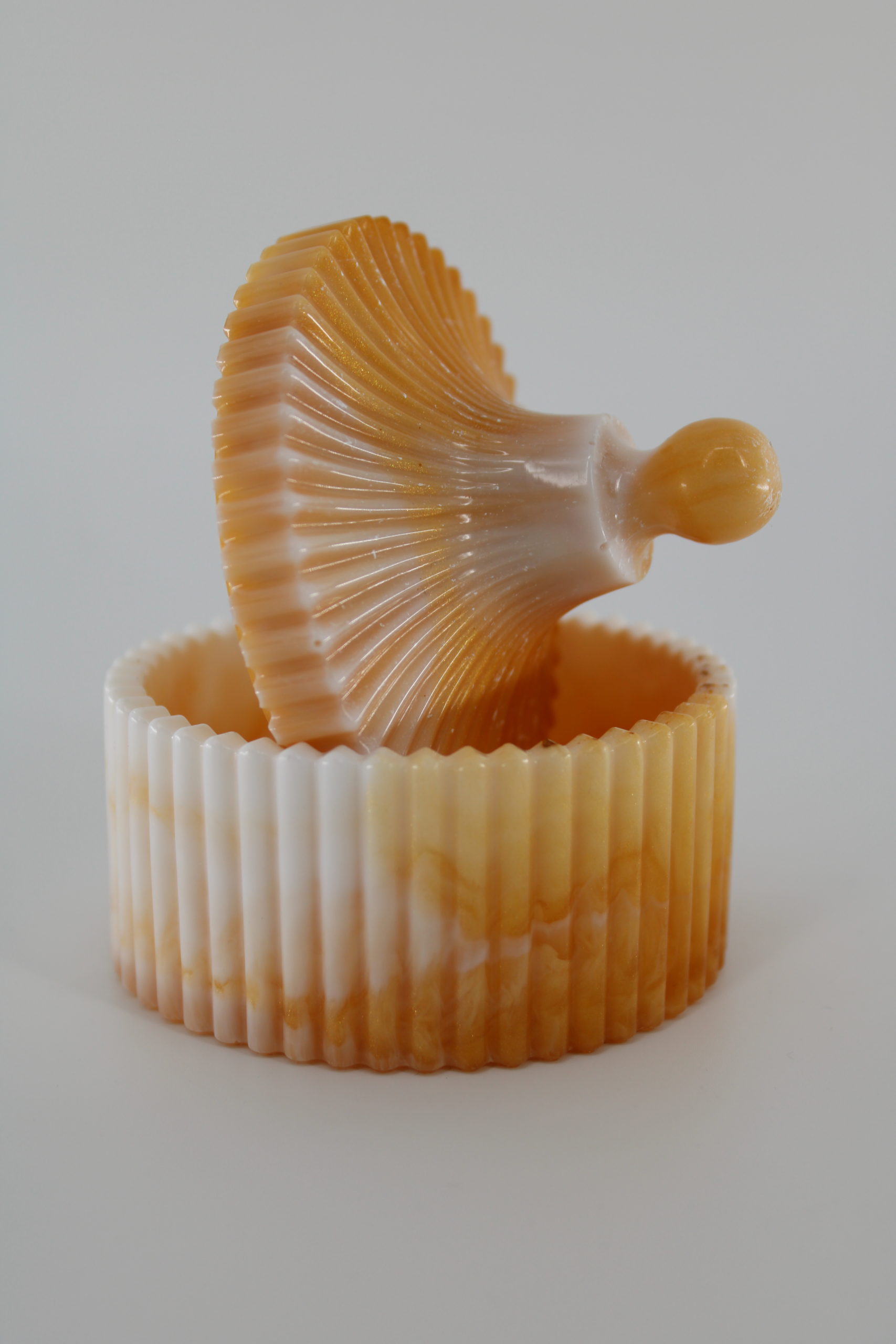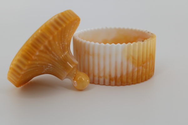 Potje wit goud Epoxy Zonning epoxy potje in warme goud en wittinten met deksel. Potje aqua Schaal blauw rood wit