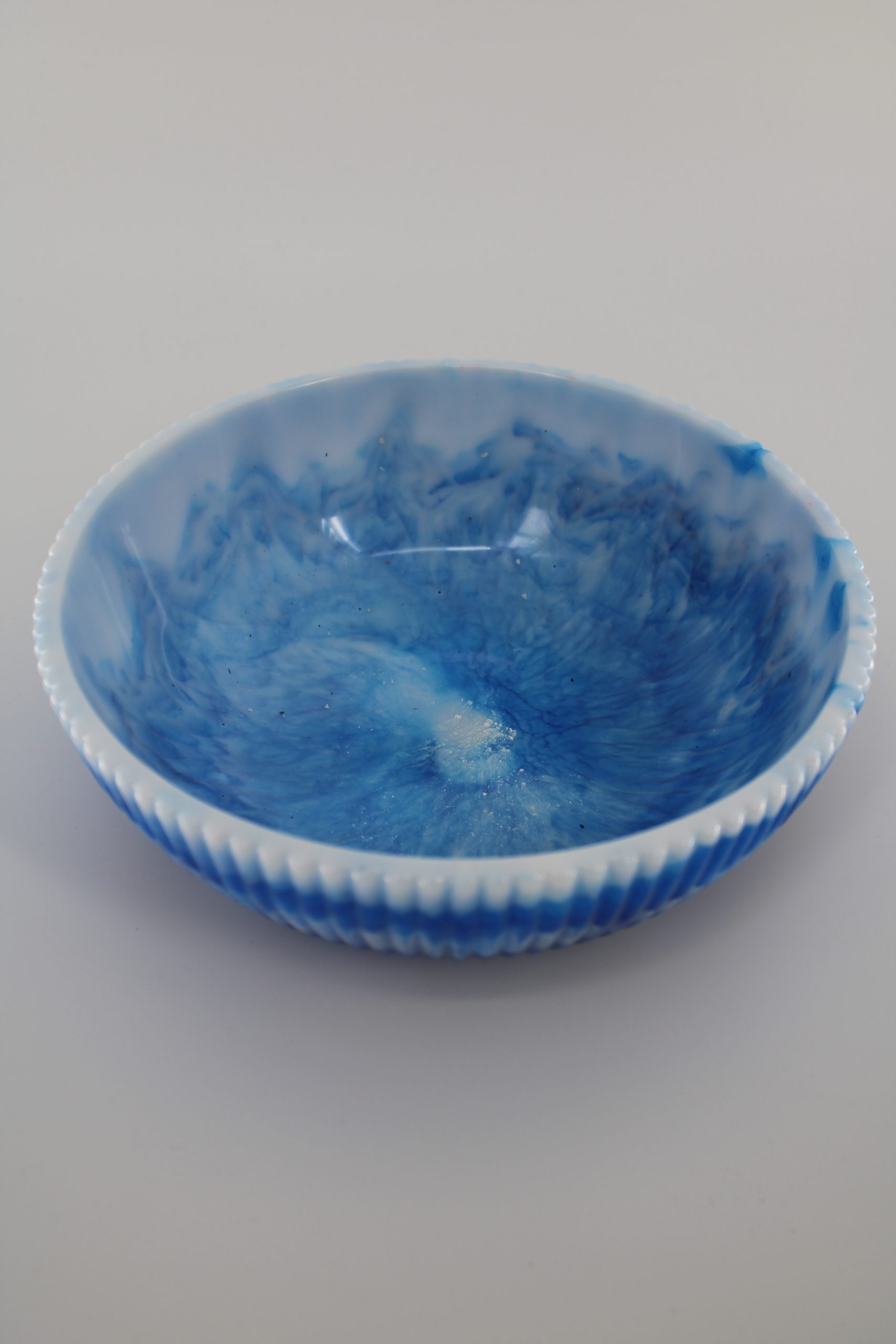 Schaal blauw wit Epoxy Decoratieve epoxy schaal in zachte blauw-witte tinten. Schaal blauw rood wit Schaal goud zwart