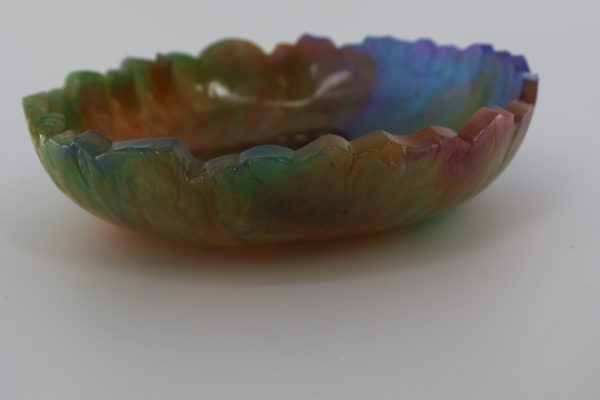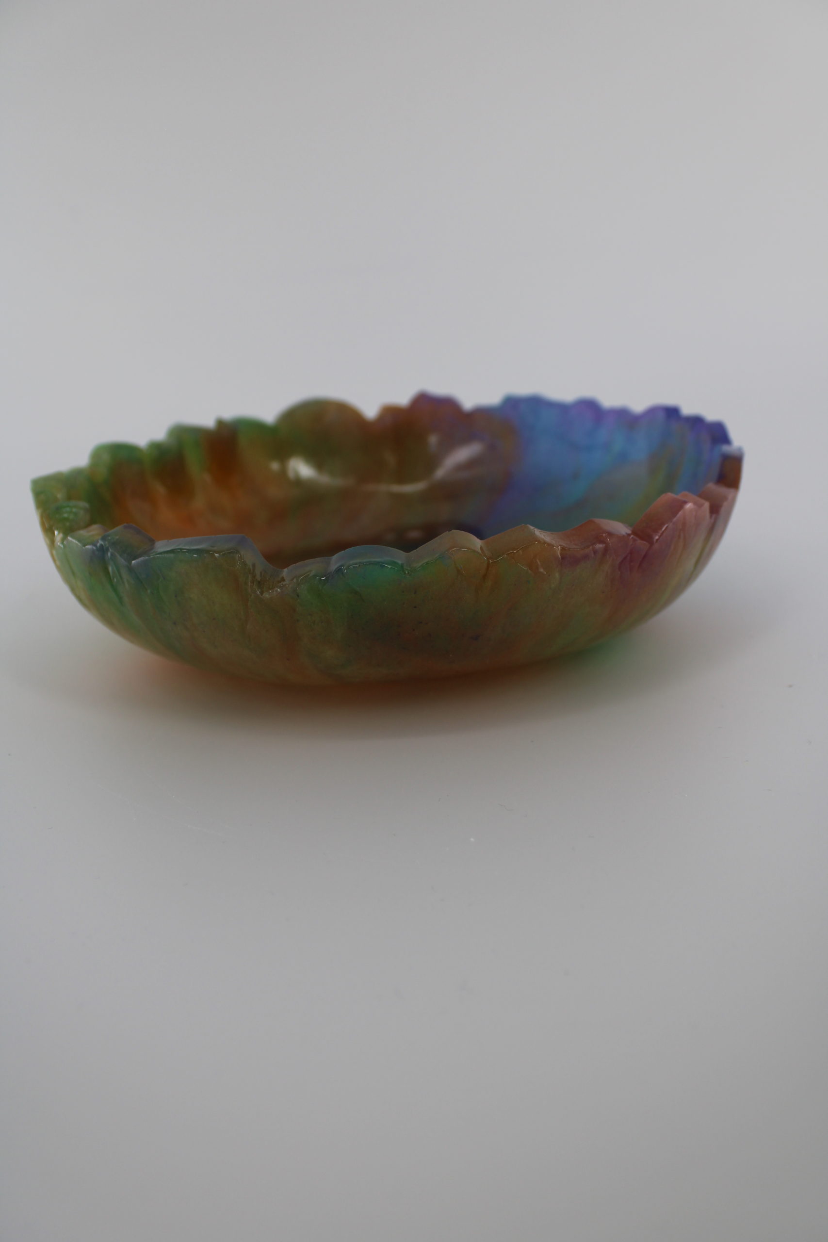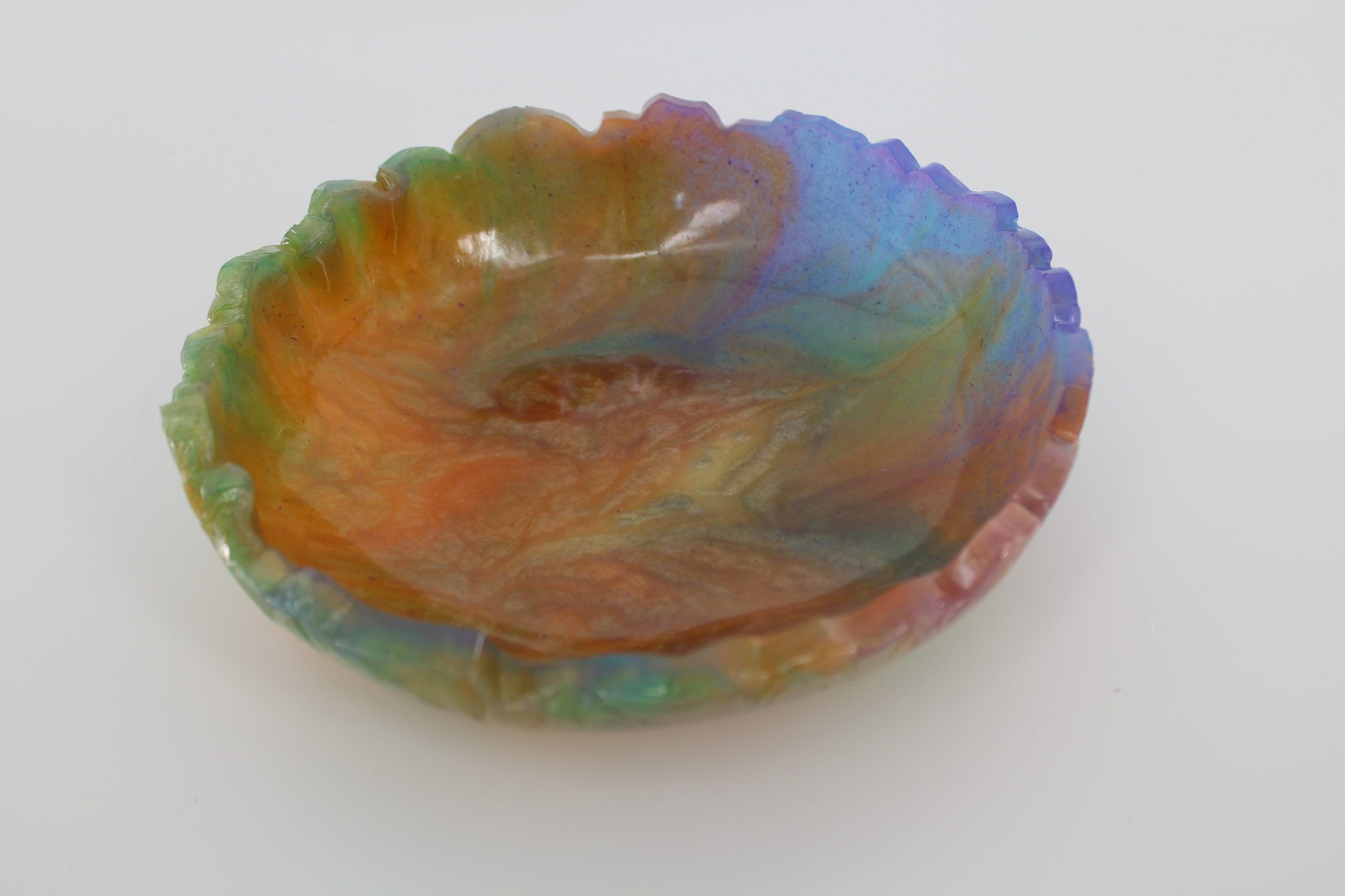 Schaal regenboog Epoxy Unieke epoxy schaal met regenboogkleuren, opvallend decorstuk voor tafel of kast. Schaal mint Schaal wit goud
