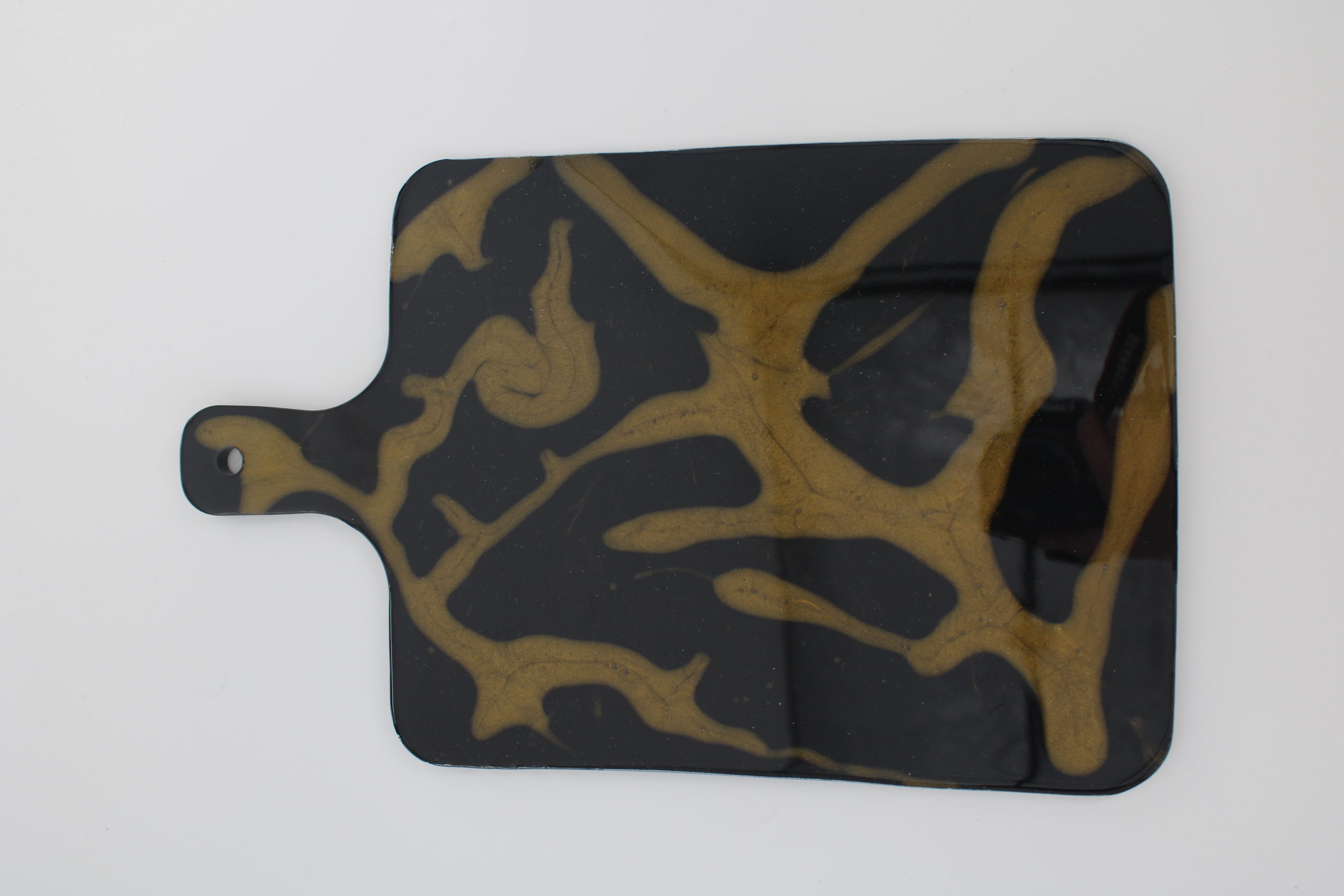 Serveerplank Vloei Epoxy Epoxy serveerplank in diep zwart met organische goudkleurige lijnen. Schaal zwart goud wave Serveerplank cakejes