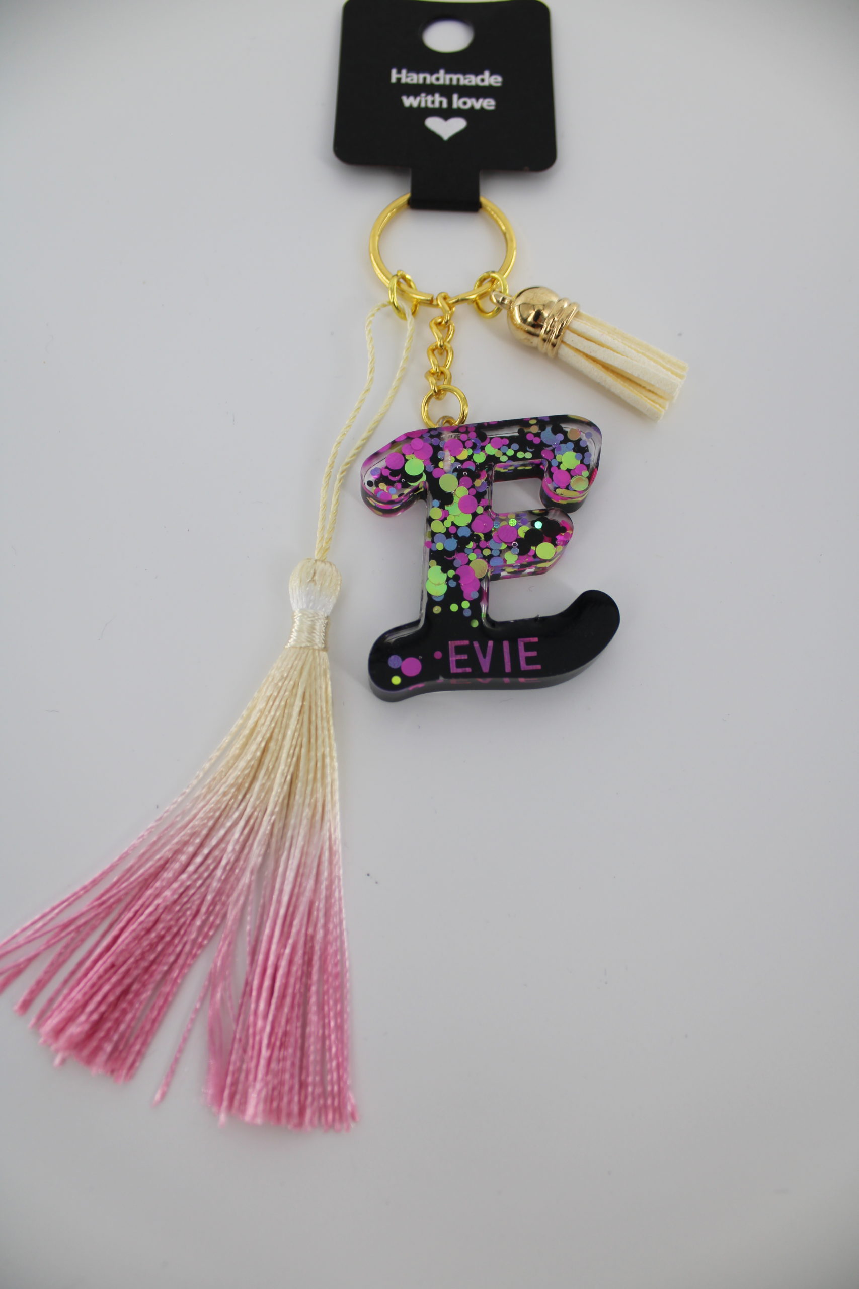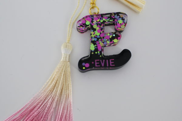 Sleutelhanger E Epoxy Epoxy sleutelhanger, te personaliseren: van subtiel met je eigen naam tot sparkle. Tip: Ideaal voor goodiebags op kinderfeestjes of leuk aan jou eigen sleutelbos. Kijk bij de cadeaus voor goodiebag pakketjes met sleutelhanger. Sleutelhanger C Sleutelhanger K