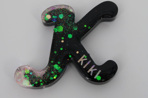 Sleutelhanger K Epoxy Epoxy sleutelhanger, te personaliseren: van subtiel met je eigen naam tot sparkle. Tip: Ideaal voor goodiebags op kinderfeestjes of leuk aan jou eigen sleutelbos. Kijk bij de cadeaus voor goodiebag pakketjes met sleutelhanger. Sleutelhanger E Sleutelhanger M