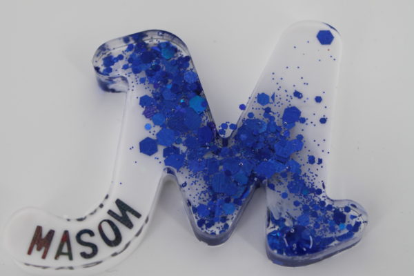 Sleutelhanger M Epoxy Epoxy sleutelhanger, te personaliseren: van subtiel met je eigen naam tot sparkle. Tip: Ideaal voor goodiebags op kinderfeestjes of leuk aan jou eigen sleutelbos. Kijk bij de cadeaus voor goodiebag pakketjes met sleutelhanger. Sleutelhanger K Sleutelhanger S