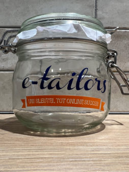 Snoeppot Etailors Bestickering Glazen snoeppot met logo/naam/quote—handig én decoratief op balie, bureau of thuis. Tip: Leuk als relatiegeschenk of traktatiepot; kies mat of glans letterfolie. (Handwas aanbevolen.) Camper bestickering Kerstballen Festival